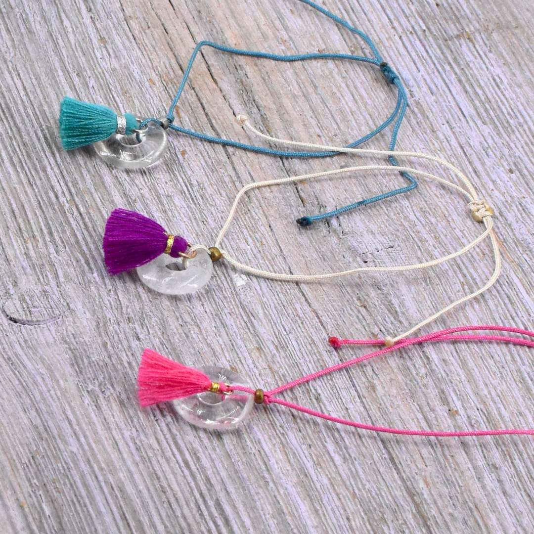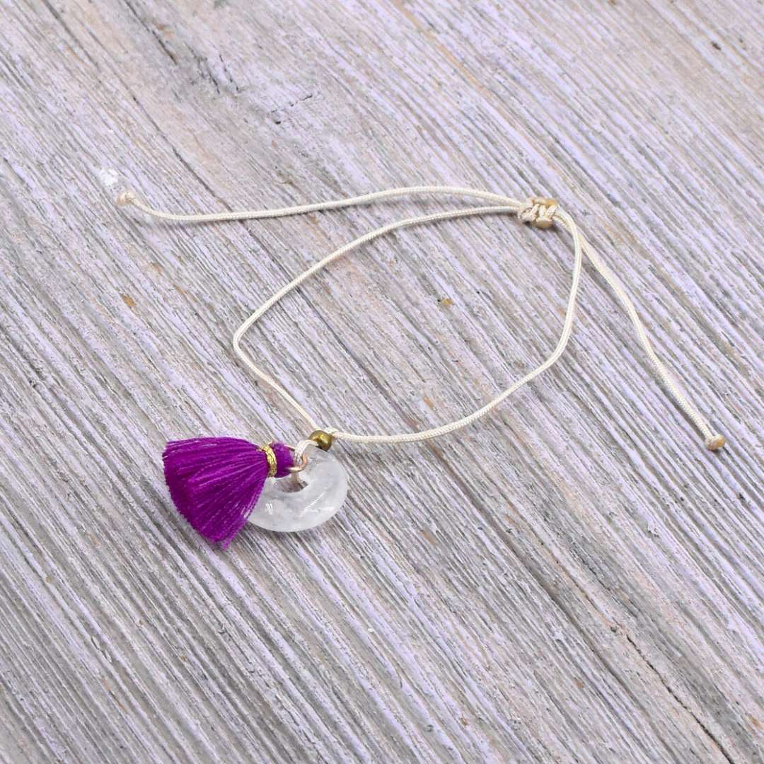 - feines Armband mit Mini Donut aus Bergkristall und farblich passender Quaste