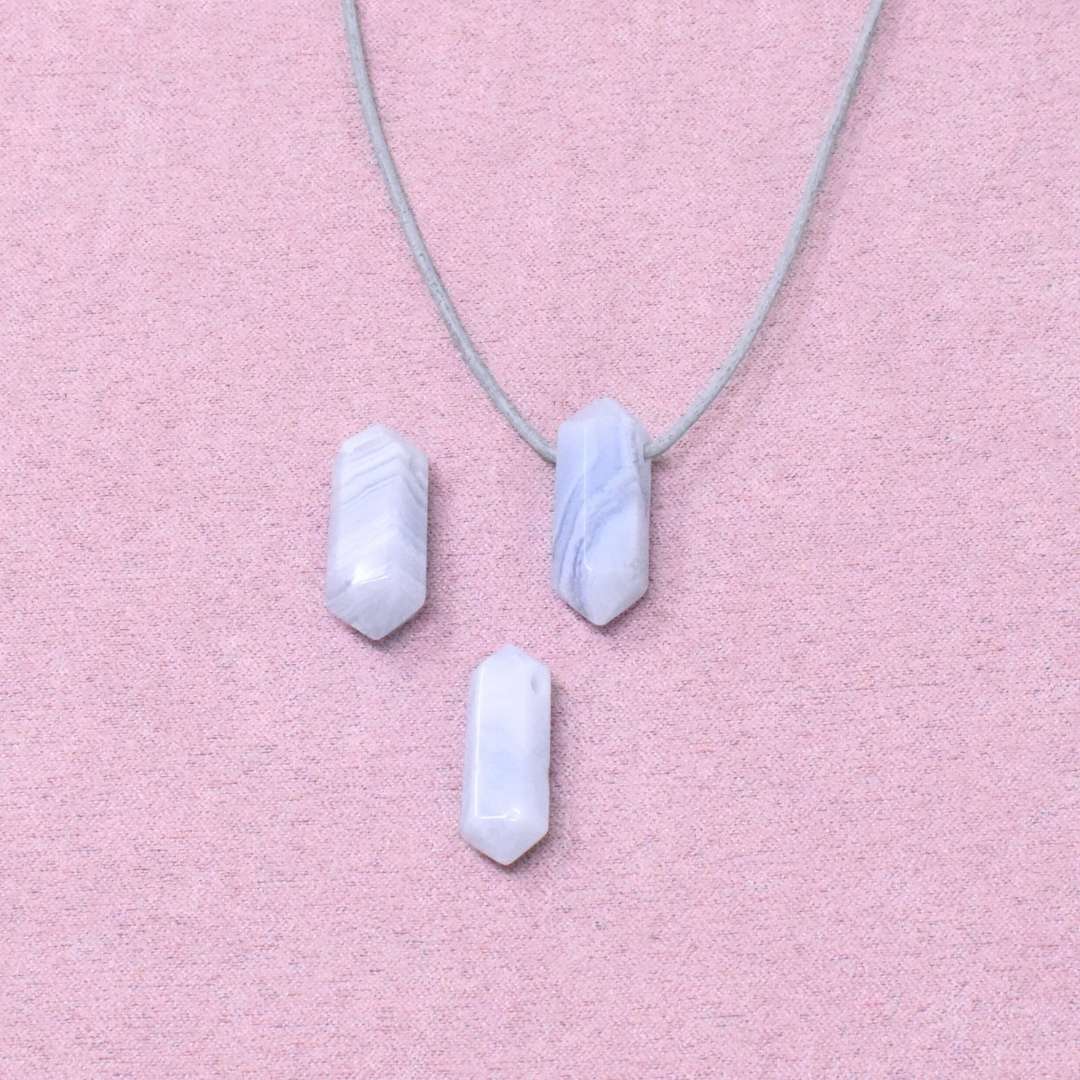 Die Chalcedon Halskette mit Doppelspitze begleitet dich in Situationen, in denen es darauf ankommt, dich mitzuteilen und gleichzeitig offen für dein Gegenüber zu bleiben.