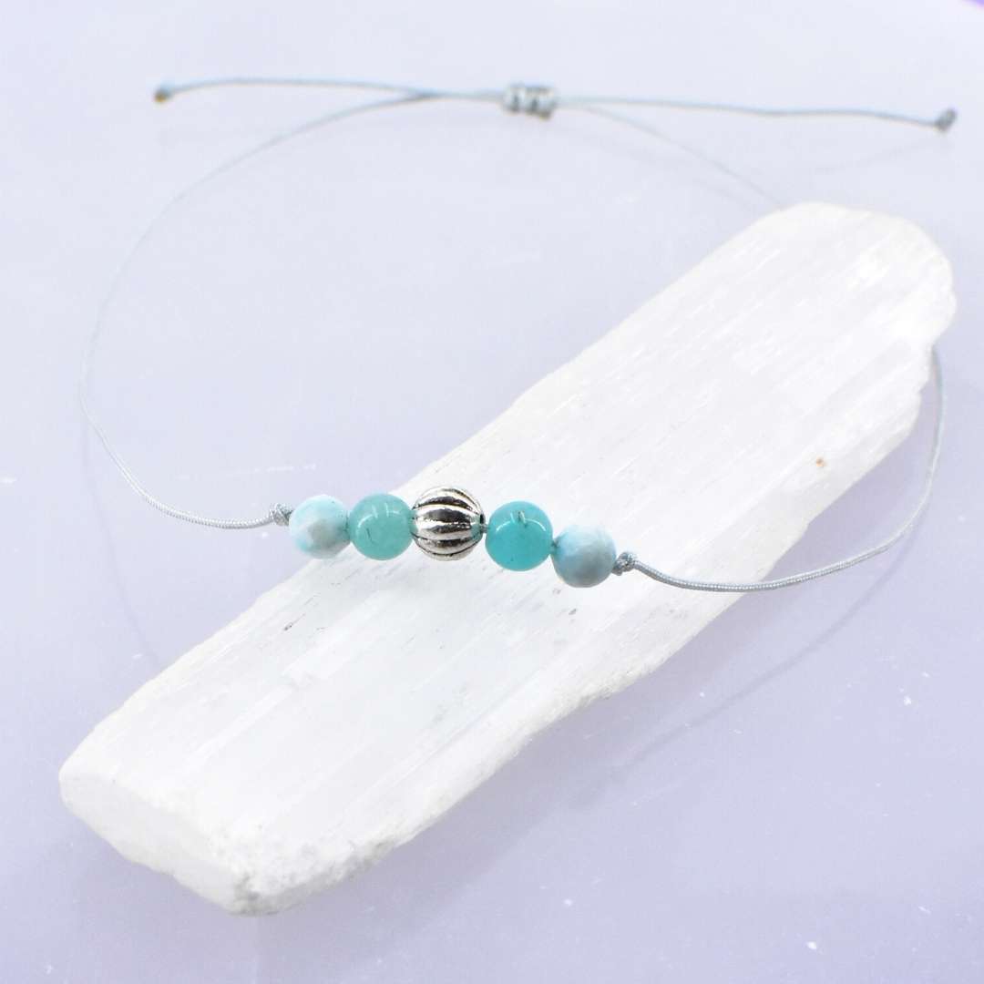 Der Amazonit bringt wohltuende Klarheit in emotionale Wellen. Er stärkt deine Grenzen, ohne Härte zu erzeugen, und hilft dir, innere Unruhe zu beruhigen, die sich oft nicht benennen lässt, aber deutlich spürbar ist.