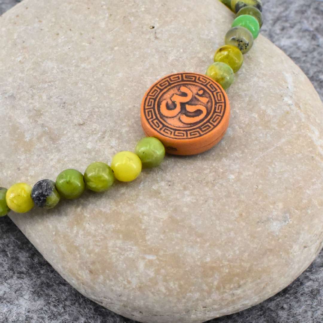 Du hast die Möglichkeit Dein Enerige Armband mit einem Anhänger zu ergänzen. Entweder mit versilbertem OM-Zeichen oder braunen OM Symbol aus Kunststoff.