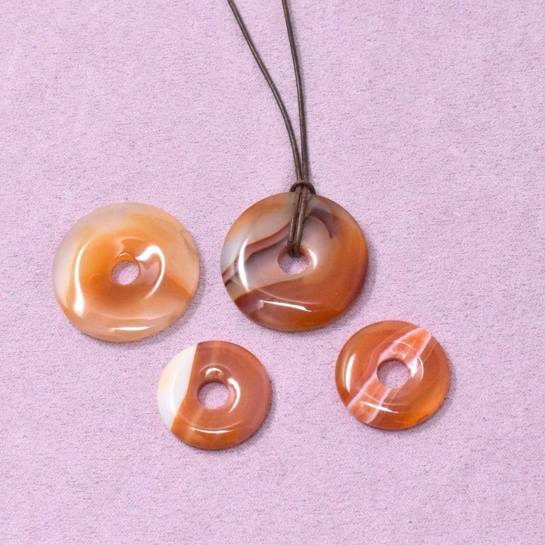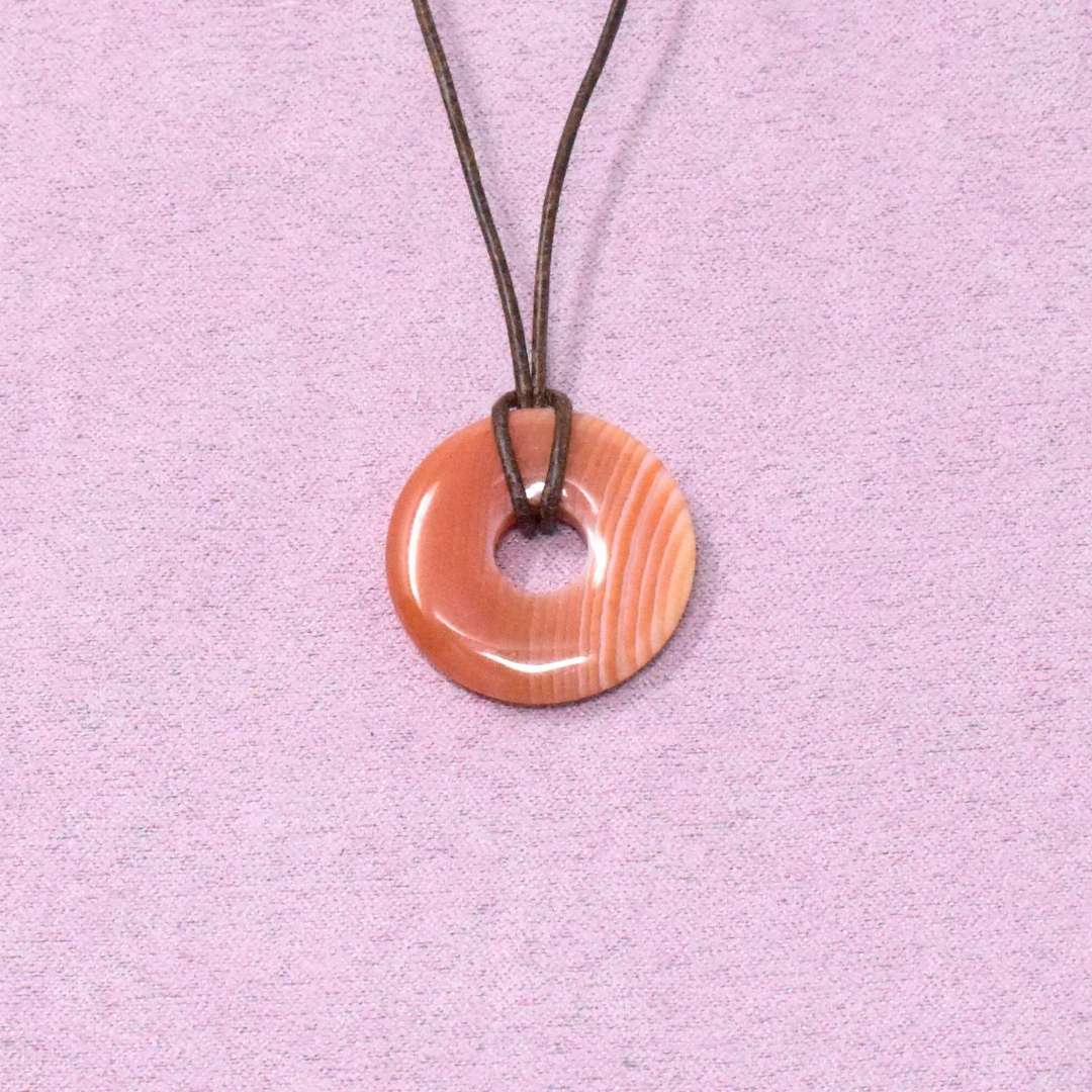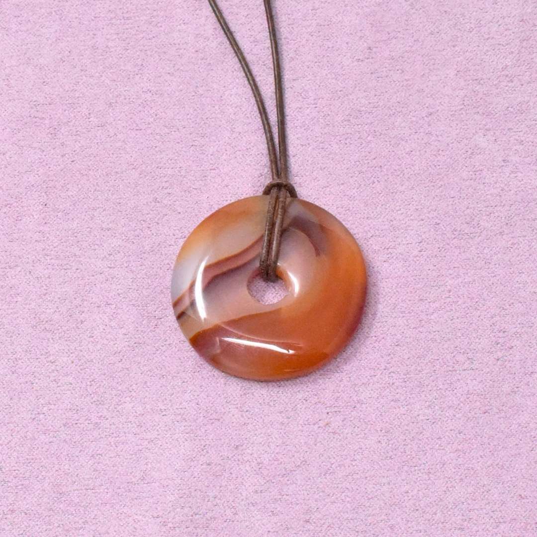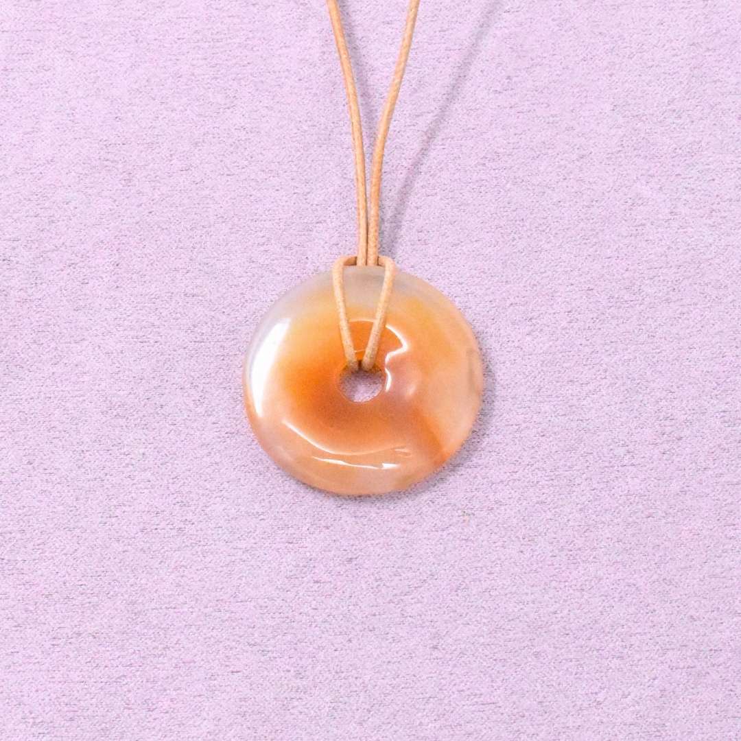 Die Karneol Halskette mit Donut-Anhänger begleitet dich in Zeiten, in denen du neue Kraft brauchst oder spürst, dass etwas in Bewegung kommen will.