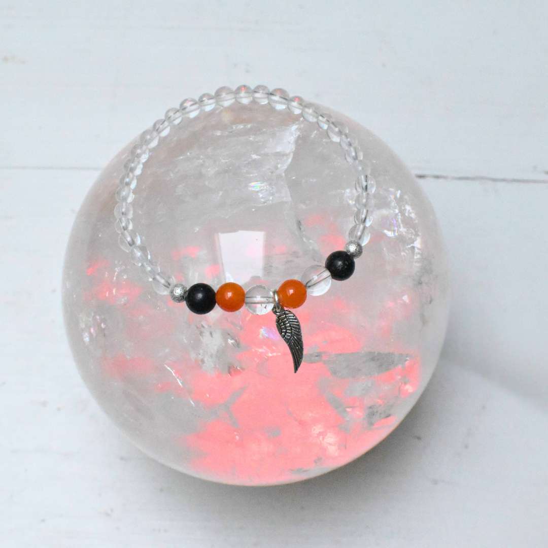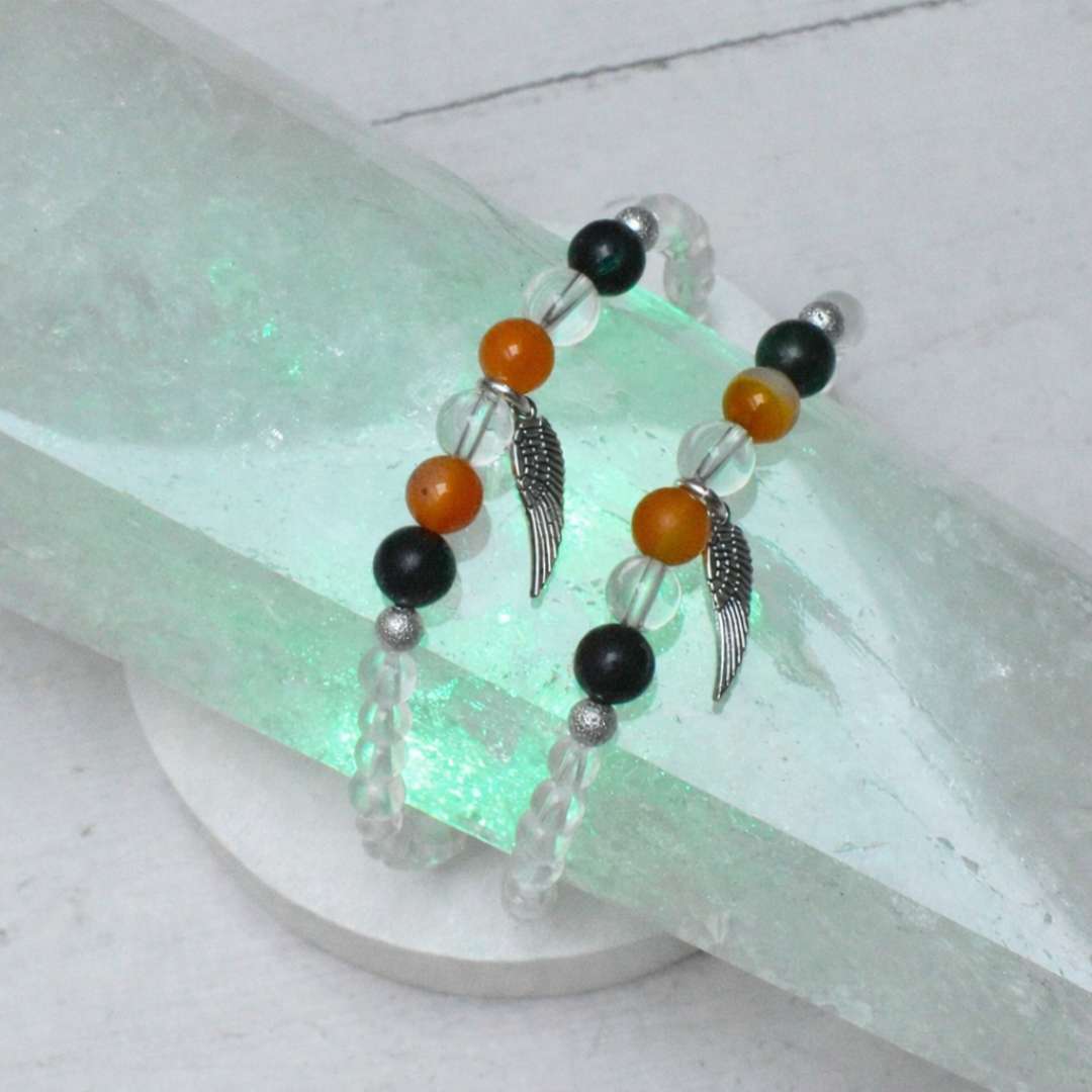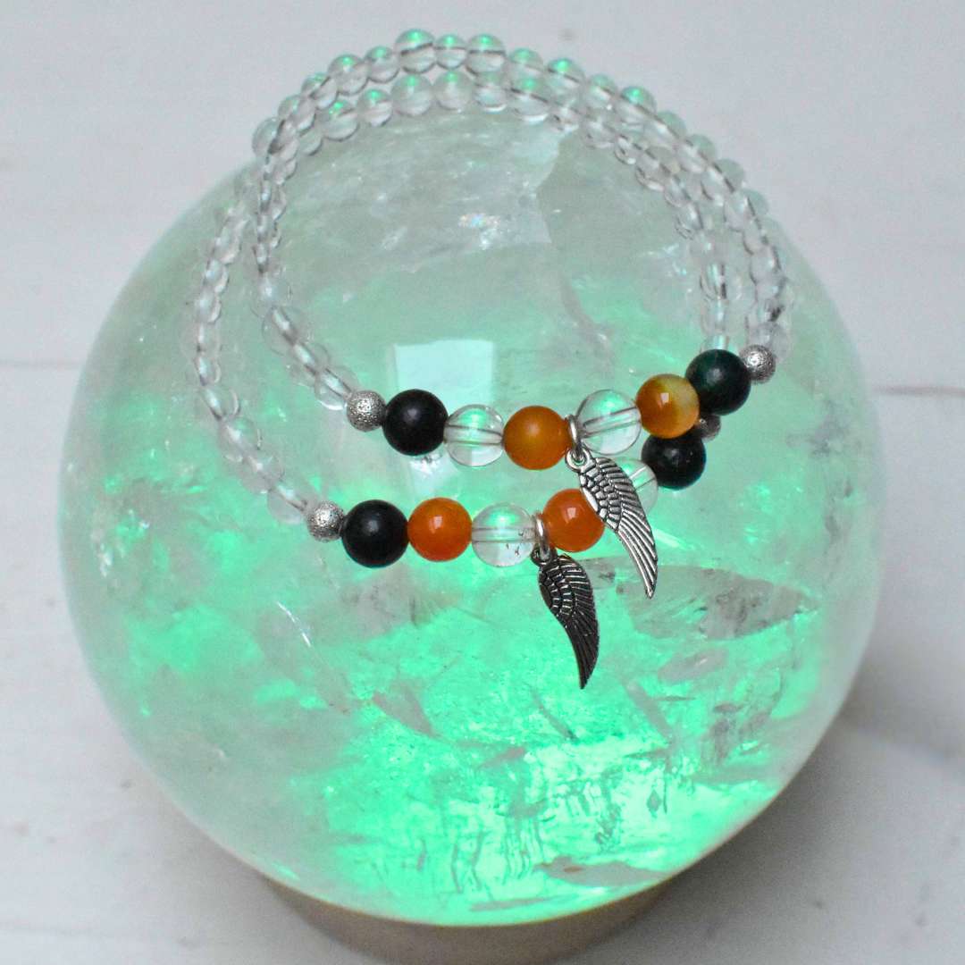 Als Armband für Klarheit und Vertrauen verbindet es die Energie von Bergkristall, Smaragd und Karneol und steht für drei Schritte auf deinem Weg: