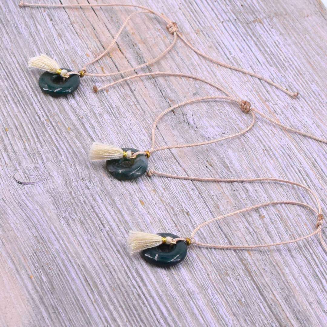 - feines Armband mit Mini Donut aus Moosachat und farblich passender Quaste