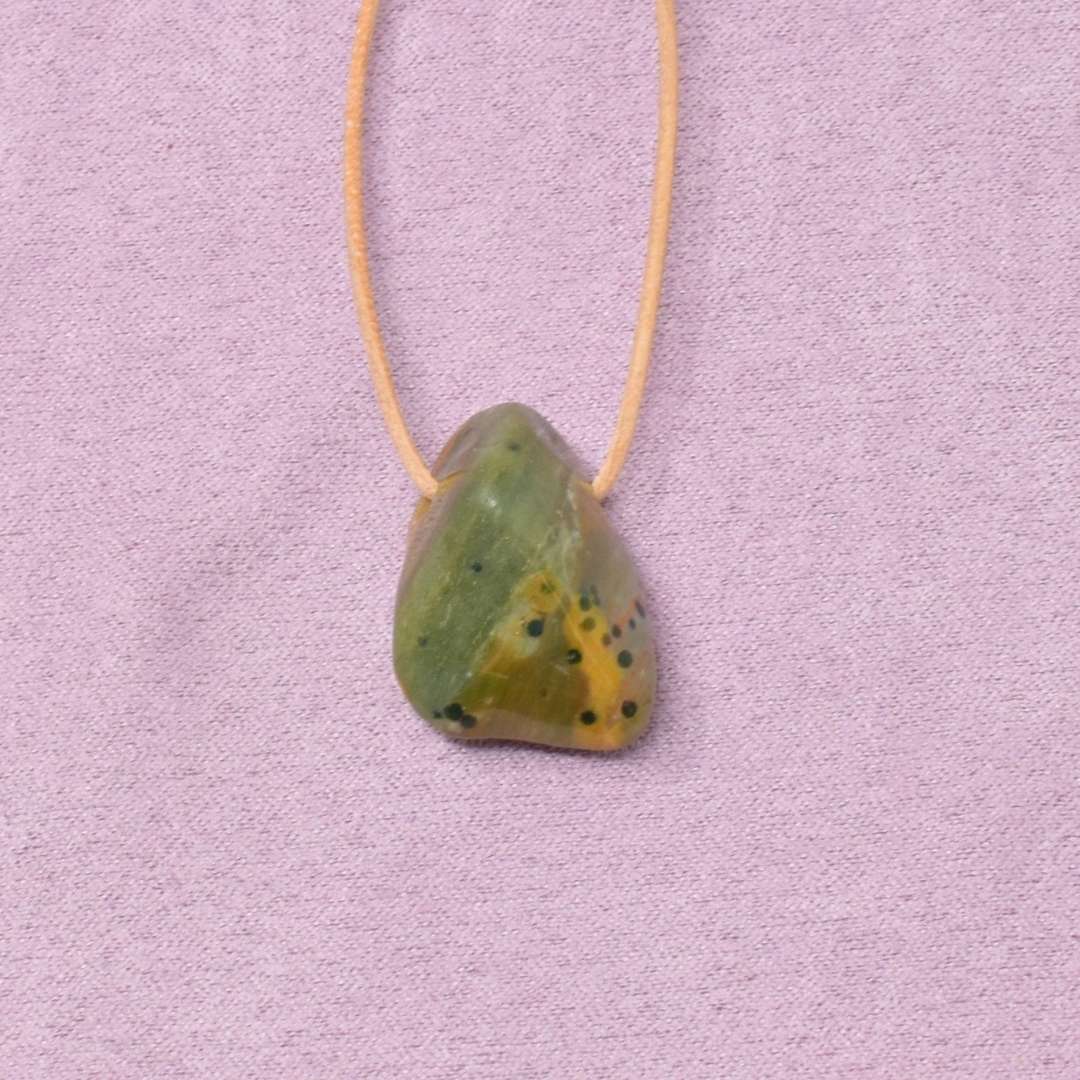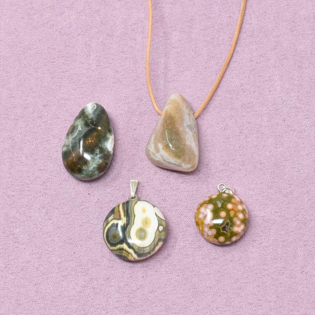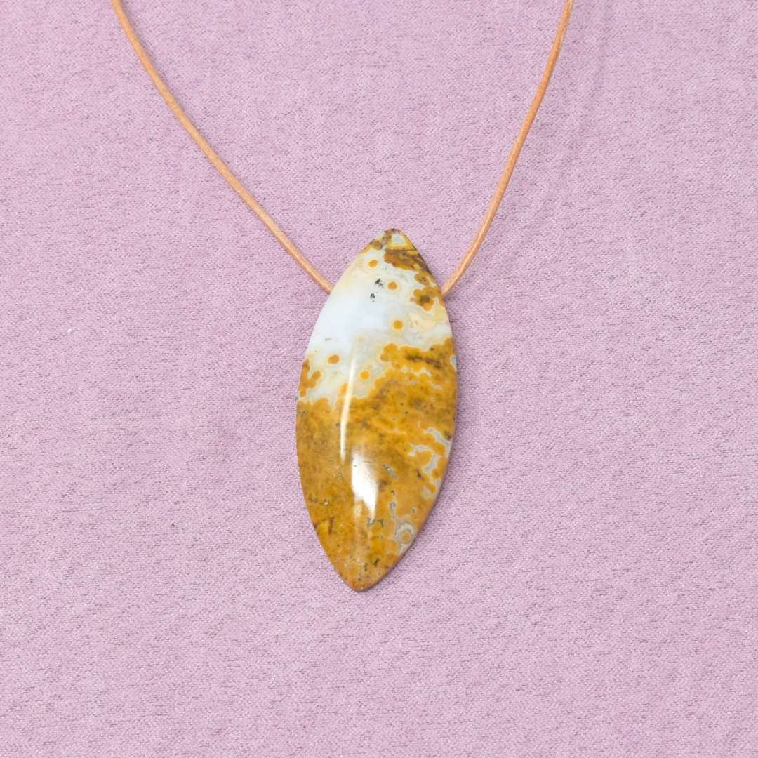 Die Ozean Jaspis Halskette mit Freiform-Anhänger begleitet dich in Zeiten, in denen du spürst, dass etwas Neues beginnen möchte und du wieder mehr Mut für Veränderung und Aufbruch entwickeln willst.