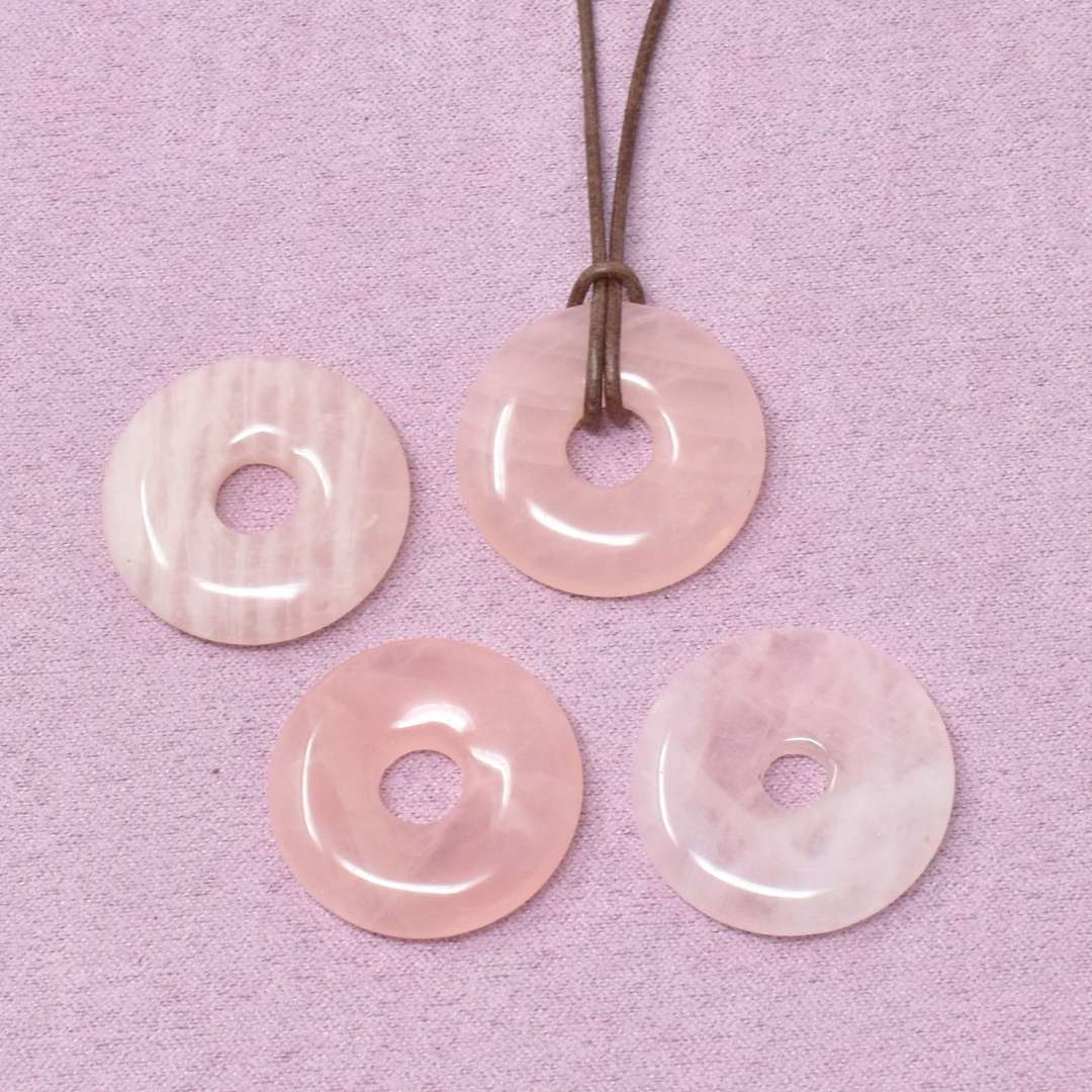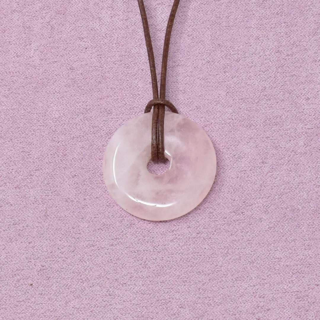 Die Rosenquarz Halskette mit Donut-Anhänger begleitet dich in Zeiten, in denen du dir mehr Liebe, innere Ruhe und Harmonie wünschst.